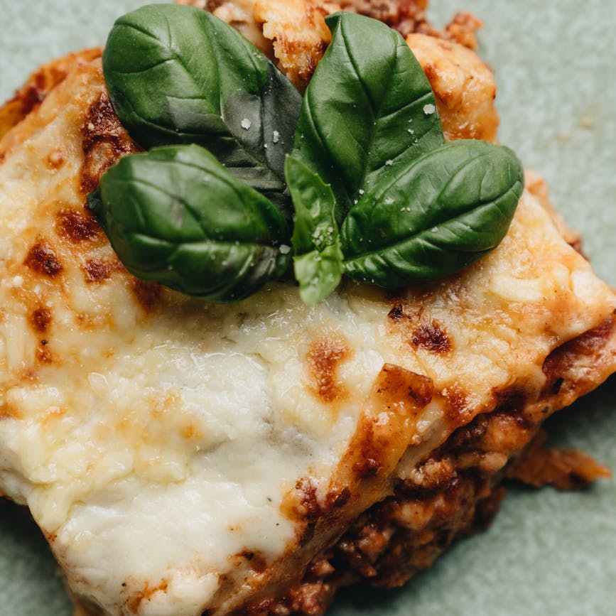 27 Lasagne mit Bolognese-und Béchamelsoße, überbacken mit Käse 11,90
